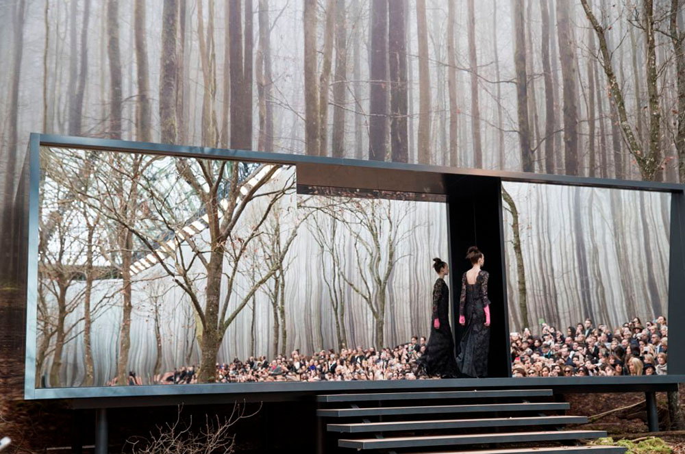 Tot i que la col·lecció en si mateixa va ser objecte de crítiques positives i el reconeixement de la premsa, molta atenció es va posar en l’ambientació de la passarel·la. El bosc recreat per Lagerfeld, sota la volta del Grand Palais, és una autèntica obra mestra de la producció d’esdeveniments.