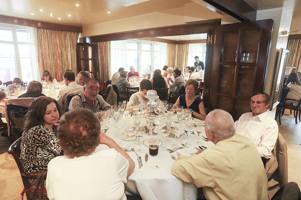 Els convidats van anar arribant i s’anaven afegint al copiós aperitiu. Després van passar a taula per degustar el menú que el xef havia elaborat per a l’ocasió. Van començar amb un foie gras d’ànec mi cuit de la casa, uns farcellets de salmó marinat a l’ou filat i caviar, un llobarro de pesca sobre fons d’espinacs i murgues, tot això abans de fer la pausa amb sorbet de grosella negra, que ajudava a fer lloc per l’espatlla sencera de cabrit rostida al forn de les tres hores. El pastís d’aniversari era el digne colofó de la festa, un massini de nata i maduixes, regat amb xampany Pommery Brut Royal.