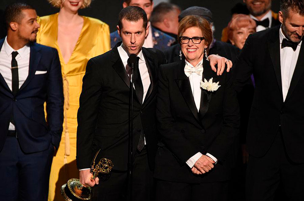 La guionista Amy Sherman-Palladino, escriptora de la sèrie còmica The Marvelous Mrs. Maisel, va rebre 4 Emmy’s, com a directora, productora executiva, supervisora de música i, per descomptat, com guionista.