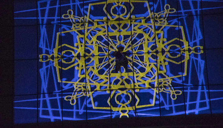 Pere Vilarrubla i Carol Garrido van ser els protagonistes de l’espectacle de dansa vertical i projeccions de dibuixos en directe, “AXIS”, que va tenir lloc, a la plaça de la Germandat, a Sant Julià de Lòria, el passat dia 16 de gener.