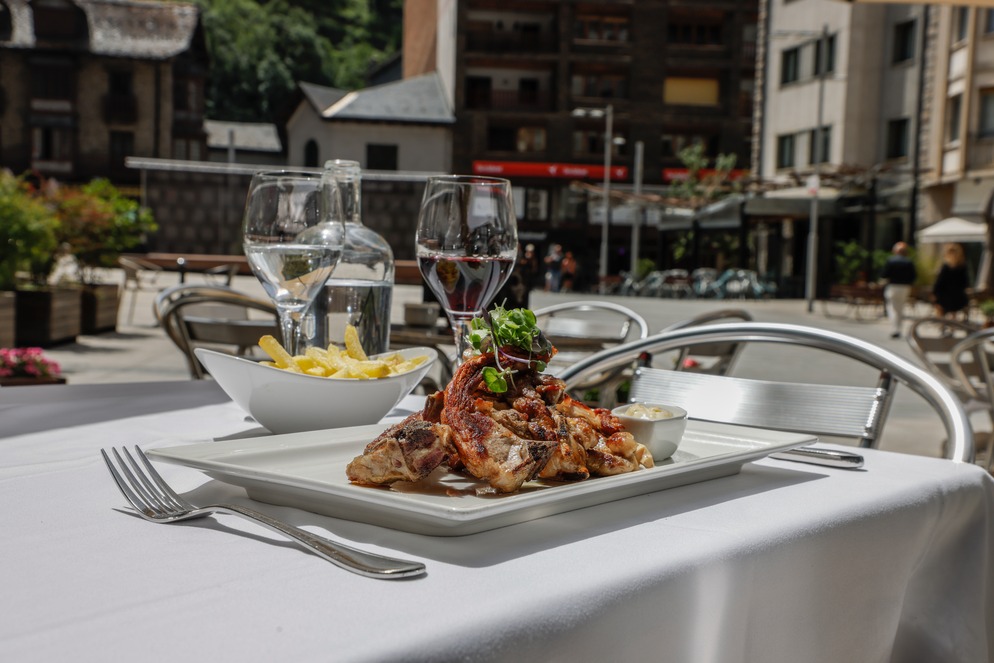 Situat a la plaça Coprínceps a Escales-Engordany, al Restaurant l’Entrecôte de l’Hotel Roc Blanc és el lloc ideal per als que busquen una experiència gastronòmica excepcional en un ambient acollidor. Amb una carta que es renova cada temporada, el xef Sergi Geronimo t’ofereix una selecció de plats elaborats amb els millors productes frescos garantint una qualitat incomparable. A més, disposa d’una terrassa amb una decoració natural i un servei atent, que ofereix l’ambient ideal per a gaudir de bons plats i moments inoblidables.