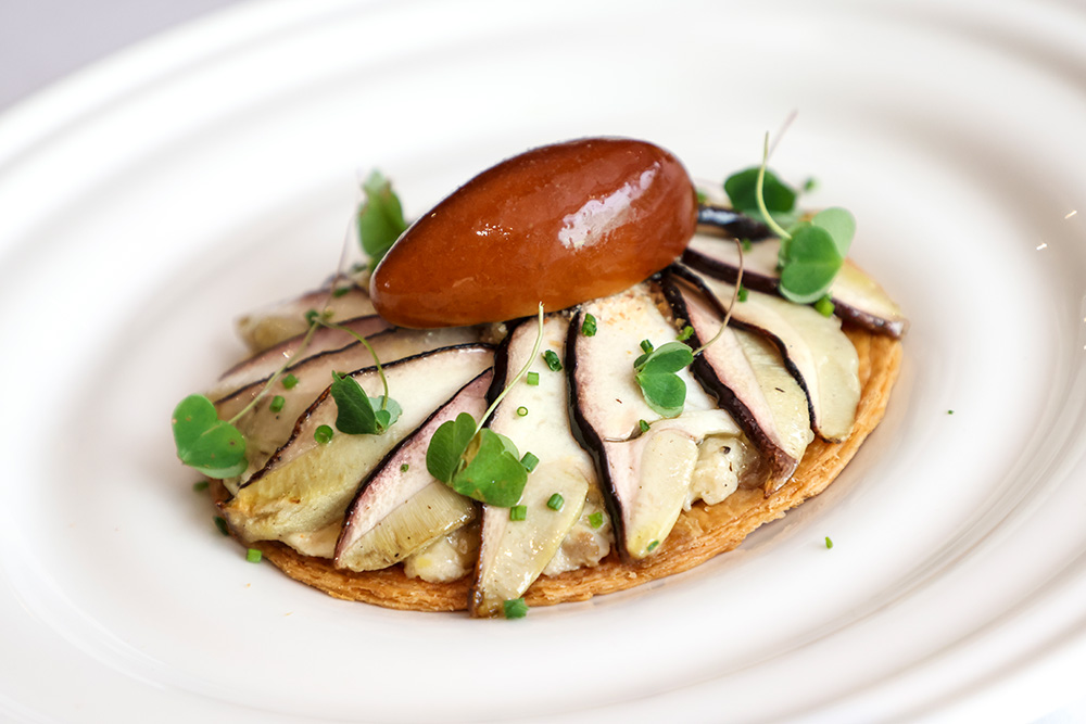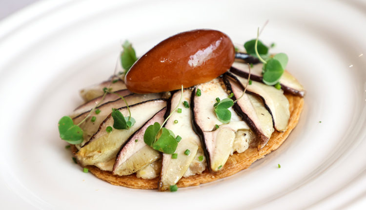 ‘Tarta’ fina de ceps, parmesà i fondant de foie, per Odetti Bistró