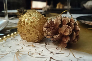 La combinació del blanc i del daurat és anar sobre segur. I si a més, ens inspirem en la natura i hi incorporem elements del bosc, aconseguirem una taula glamurosa i delicada, que serà el marc idoni per als plats que servirem el dia de Nadal o Cap d’any. Perquè si el menjar és molt important, també ho és la manera de presentar-lo. Al mig de la taula, hi podem posar una línia de pinyes daurades combinades amb boles de Nadal i branques també daurades, amb alguna espelma daurada o blanca per donar-hi un toc de caliu.