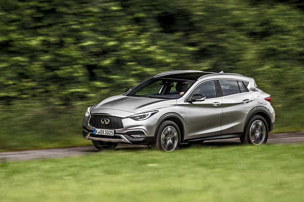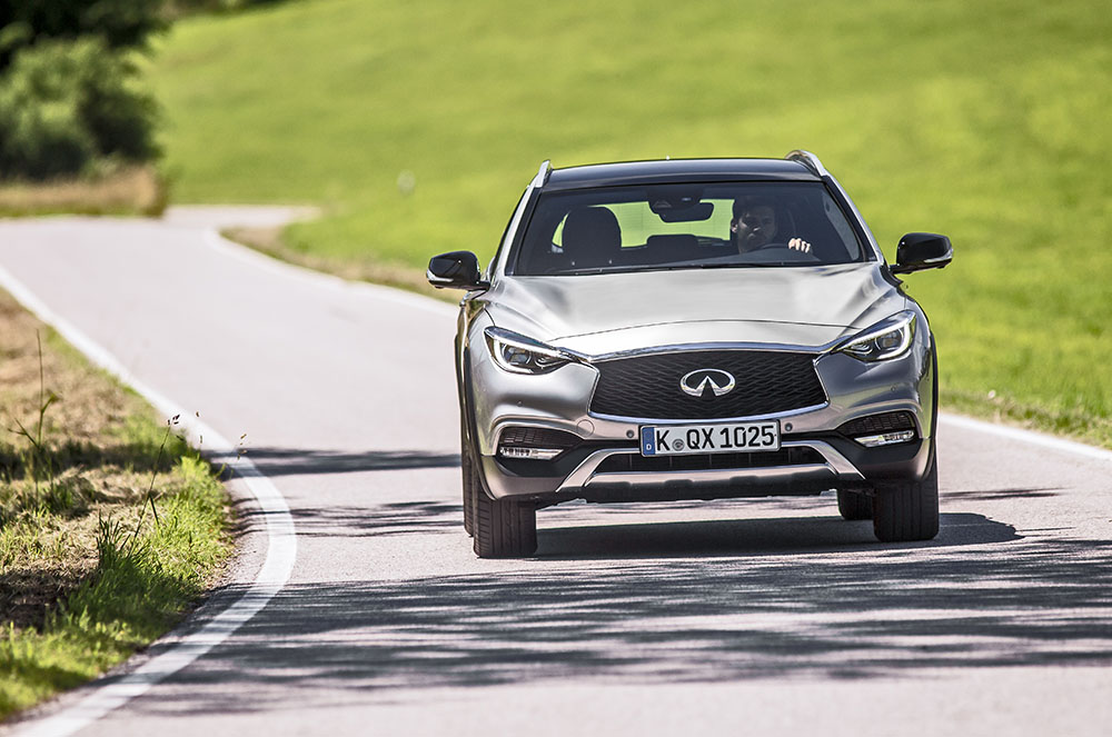 El QX30 aglutina l’essència Infiniti més autèntica. El seu disseny asimètric del seu habitacle, el capó de doble onda, una altura elevada, una conducció còmoda i una actitud versàtil, sense oblidar el seu sistema intel·ligent de tracció integral, que en condicions normals fa que només tingui tracció davantera per optimitzar el consum, mentre que en condicions més compromeses, es dona també tracció a les rodes del darrera. Està equipat amb un motor dièsel de 2.2d i 170CV.