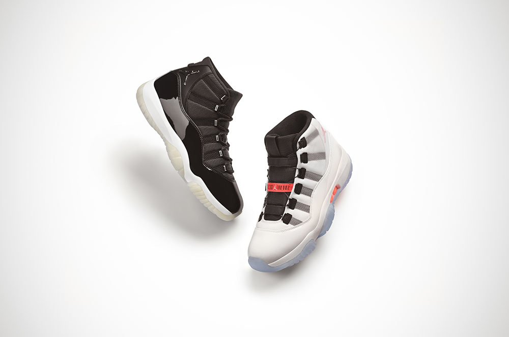 El nou model Air Jordan XI Adapt fusiona a la perfecció la tecnologia de cordons automàtics amb un estil atemporal i llegendari de la marca Jordan. El seu disseny avantguardista ofereix un ajust ferm que es pot personalitzar des del telèfon intel·ligent, gràcies a la tecnologia FitAdapt. Combina cuir autèntic amb tela lleugera i fibra de carboni per a crear una mescla d’influències clàssiques i actuals, a més d’amortiment Zoom Air en la sola, per a afegir elasticitat a la trepitjada. Quant al model Jubilee presenta un logotip Jumpman platejat metàl·lic i “Jordan” en els traus. El taló té un “23” platejat brodat amb un “25” imprès en les plantilles per a celebrar els 25 anys.