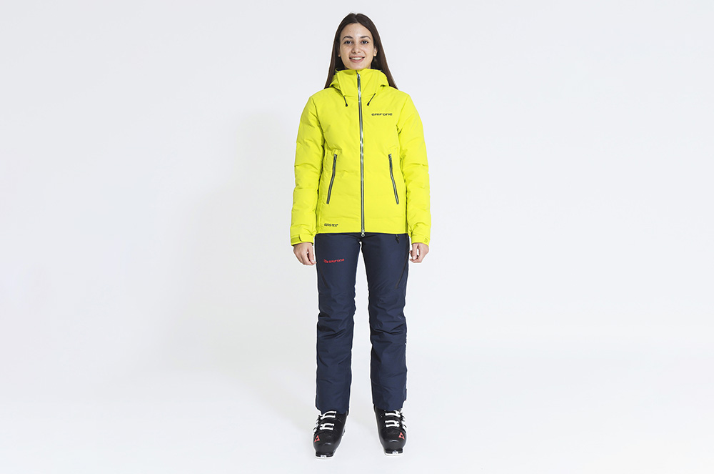 Ideal per a la pràctica d’esports de neu. Confeccionada en teixit Gore-Tex®, amb 2 capes de GRIFONE i una columna d’aigua de 28.000 mm. El disseny inclou el faldó paraneu i la caputxa amb aïllament, compatible amb el casc.