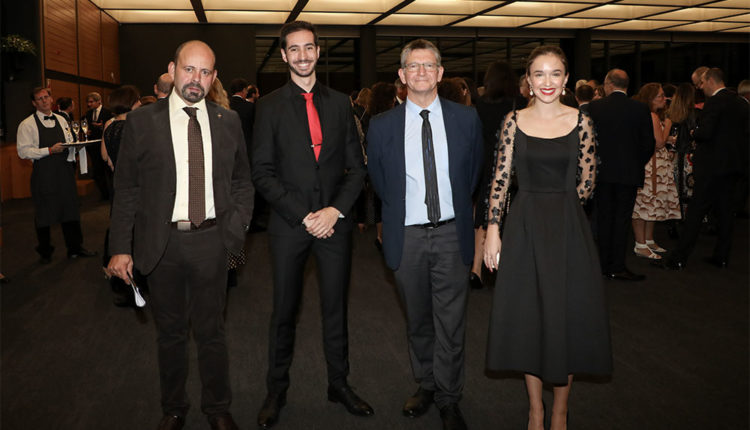 L’elegància va ser la tònica dominant a la recepció de l’Ambaixada d’Espanya i aquesta és una bona mostra. Vestit clàssic amb corbata i un total black vaporós, molt glamurós.