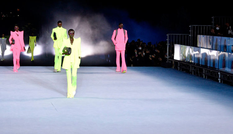 La seva desfilada ha tingut aires futuristes, amb un FrontRow telemàtic i uns dissenys en els quals la musclera es reinventa i exagera. El blanc, negre i gris són els fons que, per al director creatiu Olivier Rousteing, regnaran durant aquesta primavera i estiu. En ells contrasta un verd fluor molt pujat que aporta frescor i modernitat a la barreja.