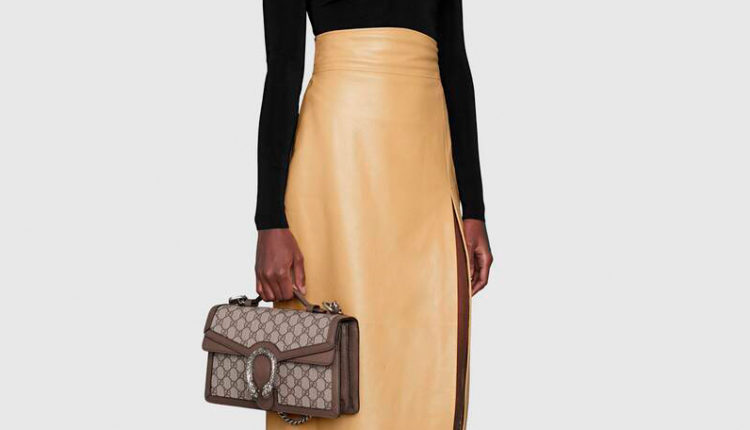 Faldilla de pell color ocre, de cintura alta i amb obertura. GUCCI. 1.500 €