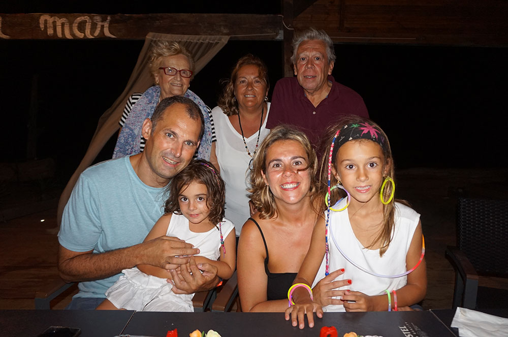 La Mireia estava acompanyada pel seu marit Cristian i les seves filles Martina i Paula, així com dels seus pares, la seva àvia i un bon nombre de familiars. Una desena de nens i nenes van poder jugar i córrer tant com van voler en una platja deserta il·luminada només per les canyetes fluorescents amb formes diverses amb què es van divertir tota la vetllada.