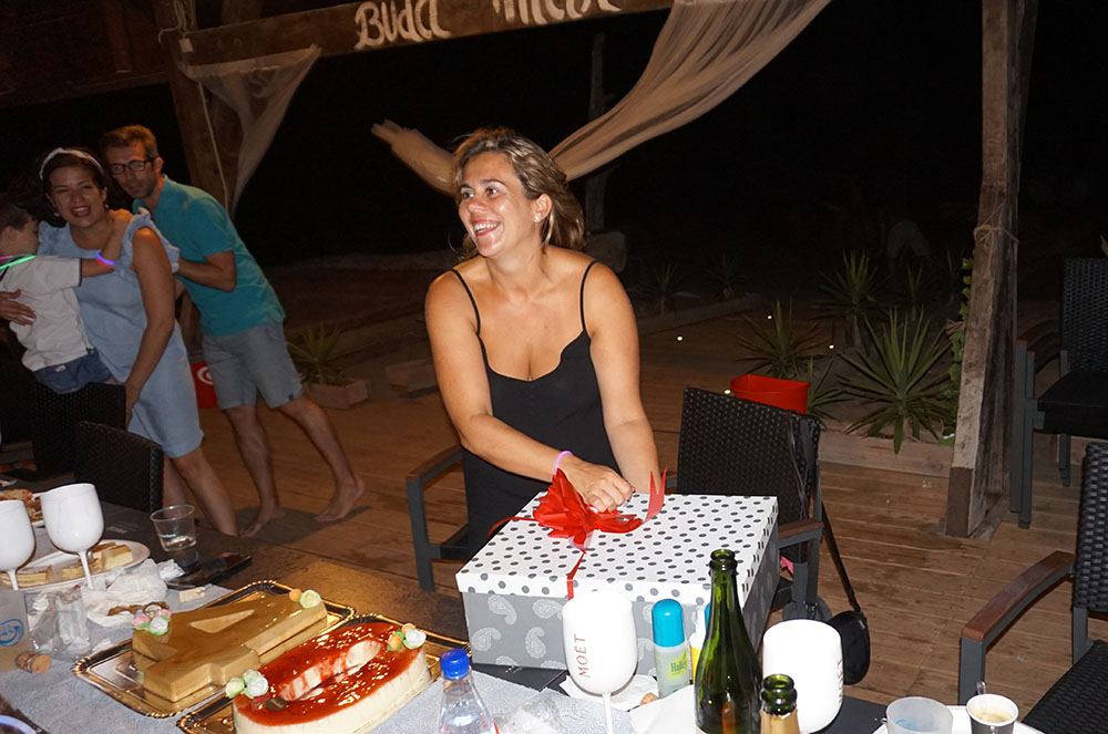 La platja de Migjorn, just al davant de l’Illa de Buda, al delta de l’Ebre, va ser l’escenari de la festa dels 40 anys de la Mireia Losilla, on es van reunir unes 35 persones, entre amics i familiars. El sopar es va fer al xiringuito Buda Mar, sobre la mateixa platja, un lloc ideal reservat en exclusiva per a la celebració.
