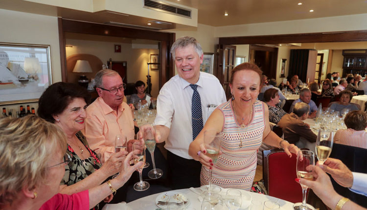 Els convidats van anar arribant i s’anaven afegint al copiós aperitiu. Després van passar a taula per degustar el menú que el xef havia elaborat per a l’ocasió. Van començar amb un foie gras d’ànec mi cuit de la casa, uns farcellets de salmó marinat a l’ou filat i caviar, un llobarro de pesca sobre fons d’espinacs i murgues, tot això abans de fer la pausa amb sorbet de grosella negra, que ajudava a fer lloc per l’espatlla sencera de cabrit rostida al forn de les tres hores. El pastís d’aniversari era el digne colofó de la festa, un massini de nata i maduixes, regat amb xampany Pommery Brut Royal.