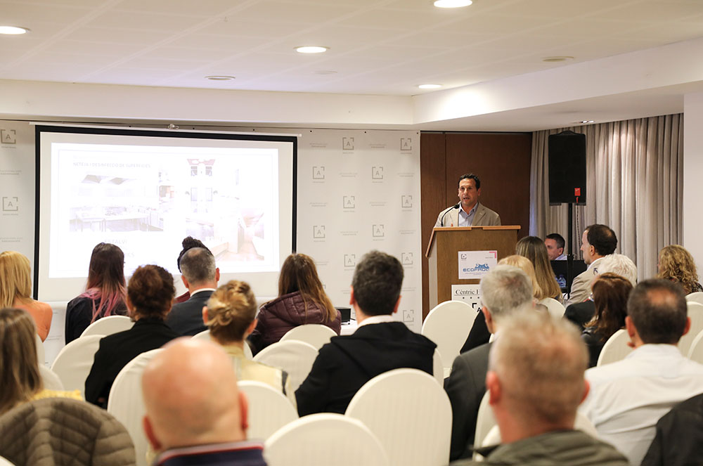 Davant de diferents professionals de la restauració, l’hostaleria i altres sectors de serveis, EcoFrog va presentar el seu sistema ecològic de neteja per a llars i negocis.