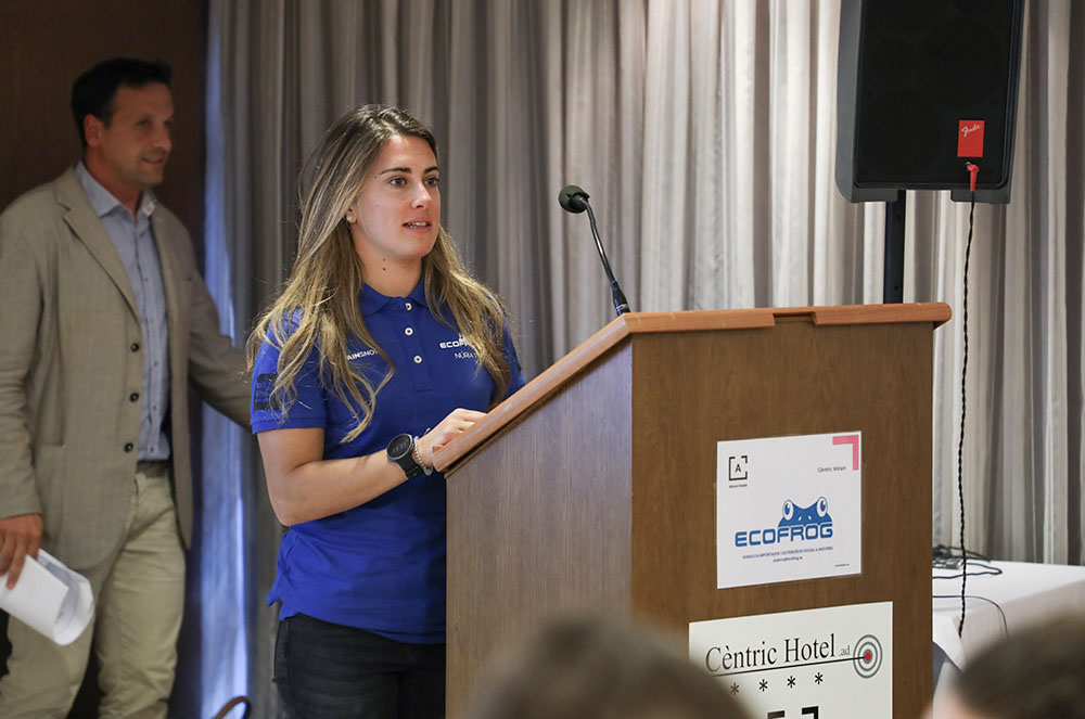 Jaume Borda, director d’expansió de Servipro 2.0 SL, i Núria Pau, esquiadora de la Copa del Món d’Esquí, també van assistir a l’acte de presentació d’EcoFrog, aquesta última com a imatge de l’empresa i per compartir els valors de conservació ecològica i sostenibilitat.