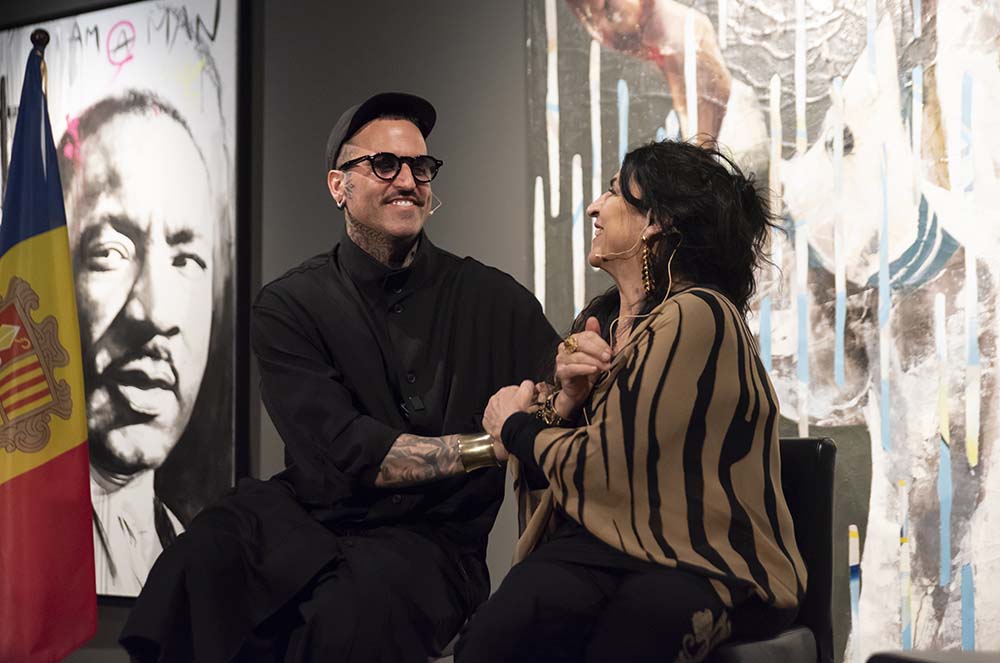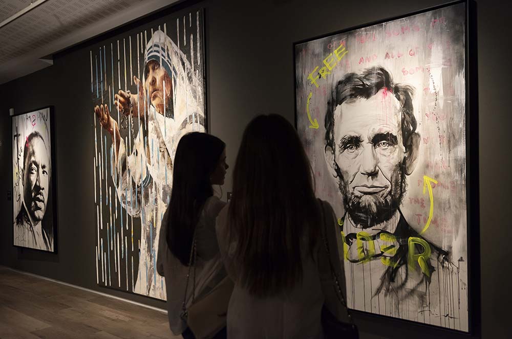 Maseda, en canvi, introdueix una mirada més urbana i contemporània, marcada per la intervenció i la ruptura. El seu llenguatge incorpora elements propis de l’art de carrer —grafismes, neons, taques de color— que alteren la representació i qüestionen la noció mateixa d’identitat. Els seus retrats no busquen fixar una imatge, sinó desestabilitzar-la, obrint noves lectures sobre la manera com construïm i consumim referents visuals.