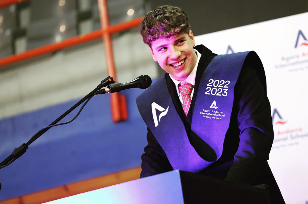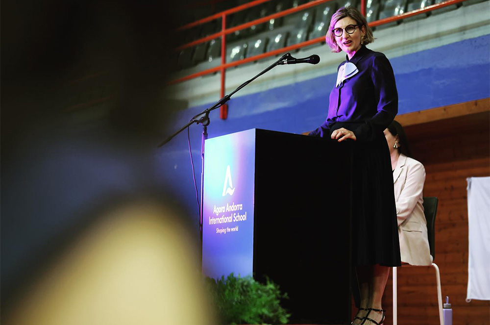 Clara Pintat, directora d’Agora International School Andorra, va agrair a tots els membres de la comunitat educativa (pares, mares, docents i els mateixos estudiants) per la seva confiança i implicació. I, en el cas dels alumnes, els hi va desitjar “tota la sort del món en allò que decidiu fer”, però, això sí, sense deixar la passió pel que es fa. “Dissenyeu el vostre projecte de vida, escolliu de manera conscient les vostres relacions, qüestioneu-vos sovint, no tingueu por als dubtes”, expressava, ja que, en un món tan canviant en què la intel·ligència artificial guanya més presència, el pensament crític, l’adaptabilitat i la formació contínua seran els millors aliats d’aquests joves que s’enlairen a una nova etapa acadèmica i professional. Citant al filòsof Schopenhauer, va dir: “el destí és el que remena i reparteix les cartes, però som nosaltres qui juguem la partida”.