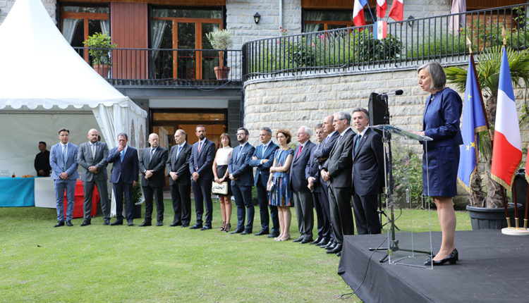L’ambaixadora francesa, Jocelyne Caballero, va rebre les autoritats del país en la celebració de la festa nacional de França, el 14 de juliol, en la tradicional recepció als jardins de la seva residència.