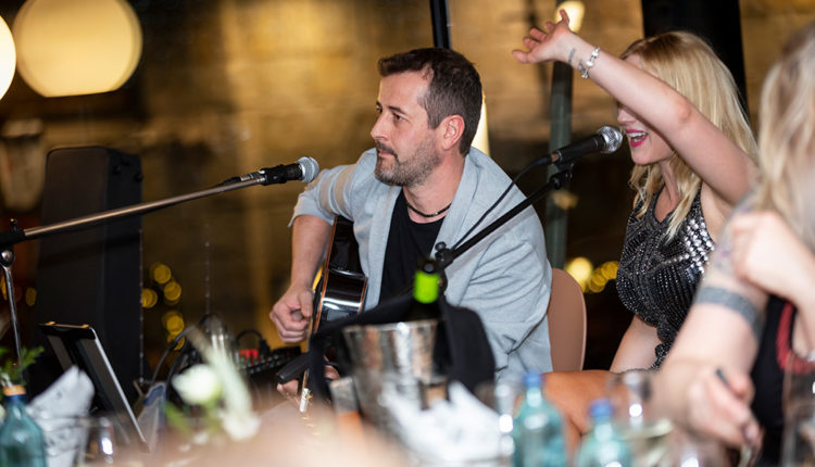 L’ambient era immillorable i tothom es va sentir molt còmode i relaxat. La decoració, amb globus i ornaments florals, va donar un toc festiu i alegre al restaurant, però la música en directe va fer que tothom gaudís encara més de la festa gràcies a les actuacions del cantant Carlos Serra Pérez, del cantautor i compositor Quim Salvat i de Carlos Sasplugas.