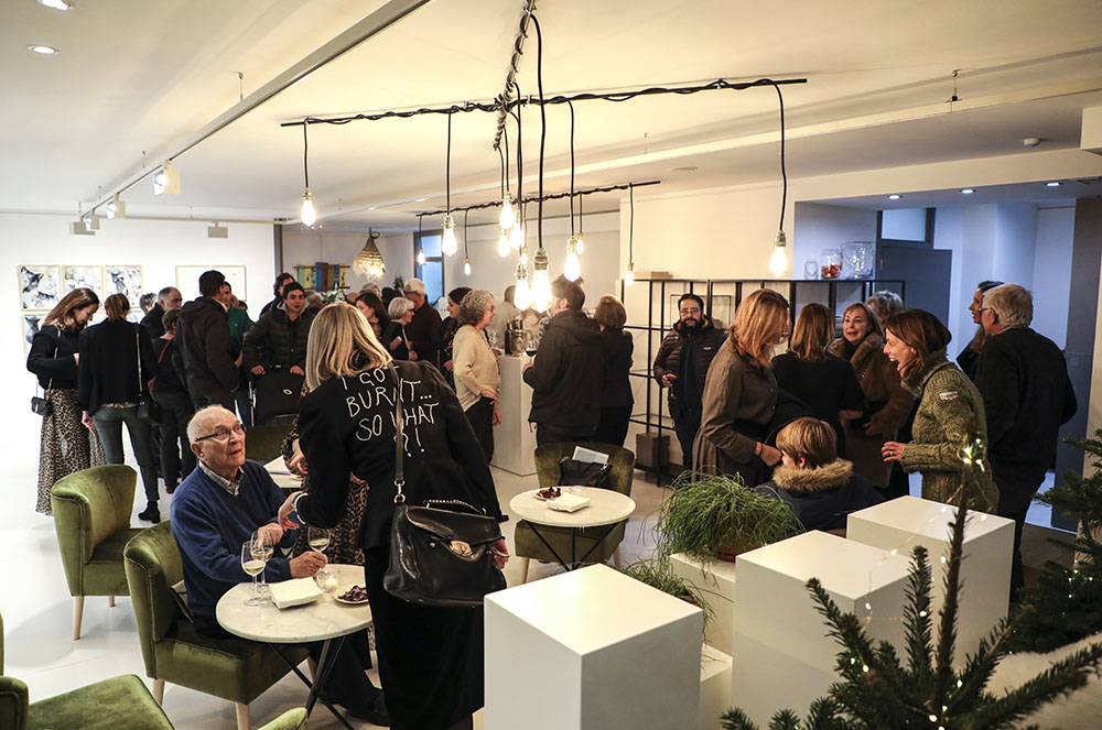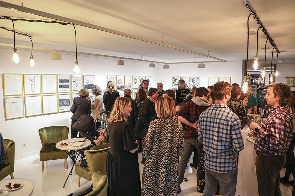 Pel que fa a la galeria d’art, exposaran artistes del país una vegada a l’any. De fet, aquesta primera exposició és un exemple ben evident. La casualitat ha volgut que, les sis artistes presents a la mostra inaugural, fossin totes dones: Eve Ariza, Judit Gaset, Jasmine Lilleby, Rosa Mujal, Gemma Piera, i Zoe. Per a l’ocasió, la galeria es va inaugurar amb una ‘site specific installation’, que consisteix en una instal·lació feta a mida, d’obra mixta (bolígraf, llapis, terres, pintura), sobre paper i de petites dimensions (35 x 45 cm).