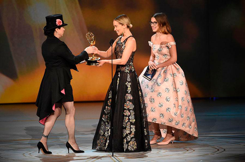 La guionista Amy Sherman-Palladino, escriptora de la sèrie còmica The Marvelous Mrs. Maisel, va rebre 4 Emmy’s, com a directora, productora executiva, supervisora de música i, per descomptat, com guionista.