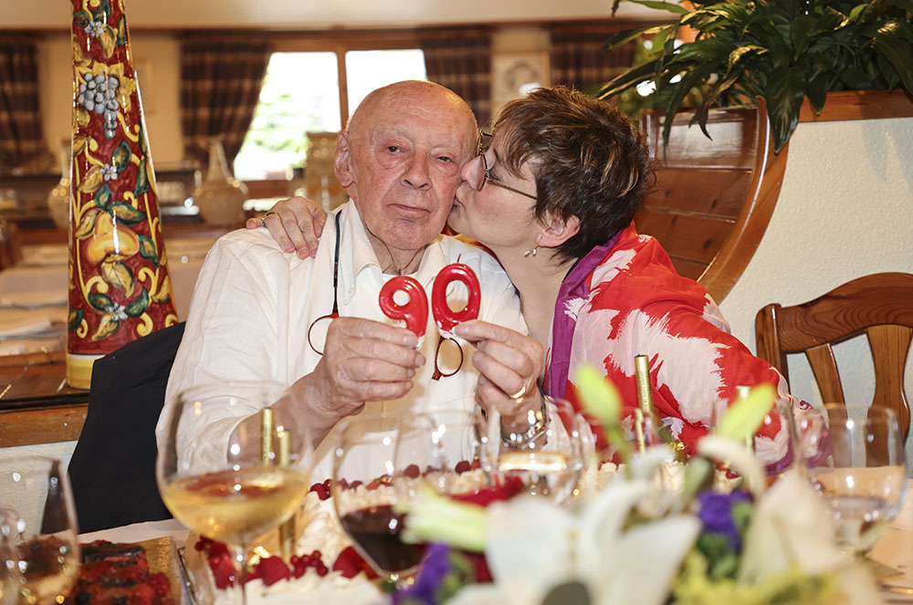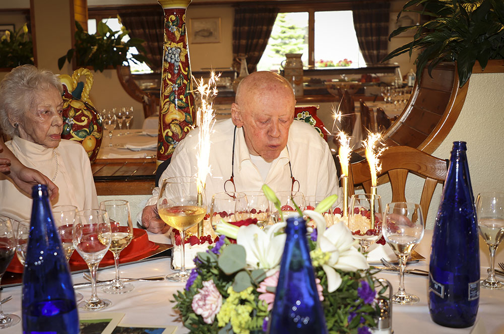 I com no tots els dies se celebren 90 anys, el Casimir el va celebrar en gran, convidant més de 90 persones. L’aperitiu va marcar l’inici d’una celebració plena de moments emocionants. Sobre la taula es va desplegar una gran varietat d’entrants deliciosos, preparats per l’equip gastronòmic de l’Hotel Rutllan, encapçalat per l’Agustí. Per fer encara més especial el festeig, el Casimir va obrir dues ampolles de vi de 6 litres, un regal que va rebre ara fa vint anys, quan va complir els seus 70. Les ampolles havien estat guardades amb cura, a l’espera d’un moment tan especial com ara el 90è aniversari. Amb les copes a la mà, els convidats van aprofitar l’ocasió per fer un brindis pel Casimir, per la seva salut i per cada any de felicitat compartida.