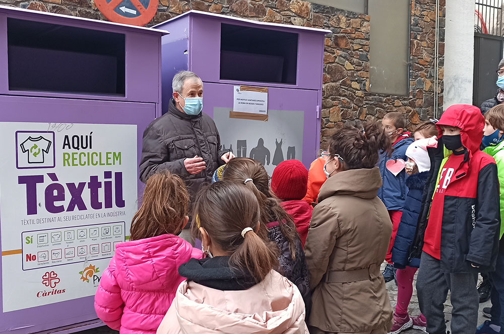 Durant la visita, els nens, d’entre sis i vuit anys, també van comptar amb els voluntaris Anna Villa i Eduard Kirchner com a amfitrions. Ells els hi van explicar el funcionament del despatx d’acollida, el rebost solidari i els contenidors per a la recollida de roba per a les persones més necessitades. Va ser una activitat molt enriquidora per als infants, que van poder traslladar el seu saló de classes a un indret molt representatiu de la parròquia.