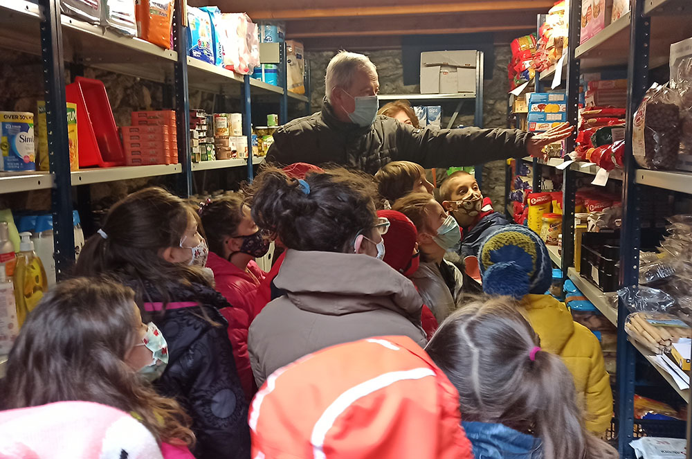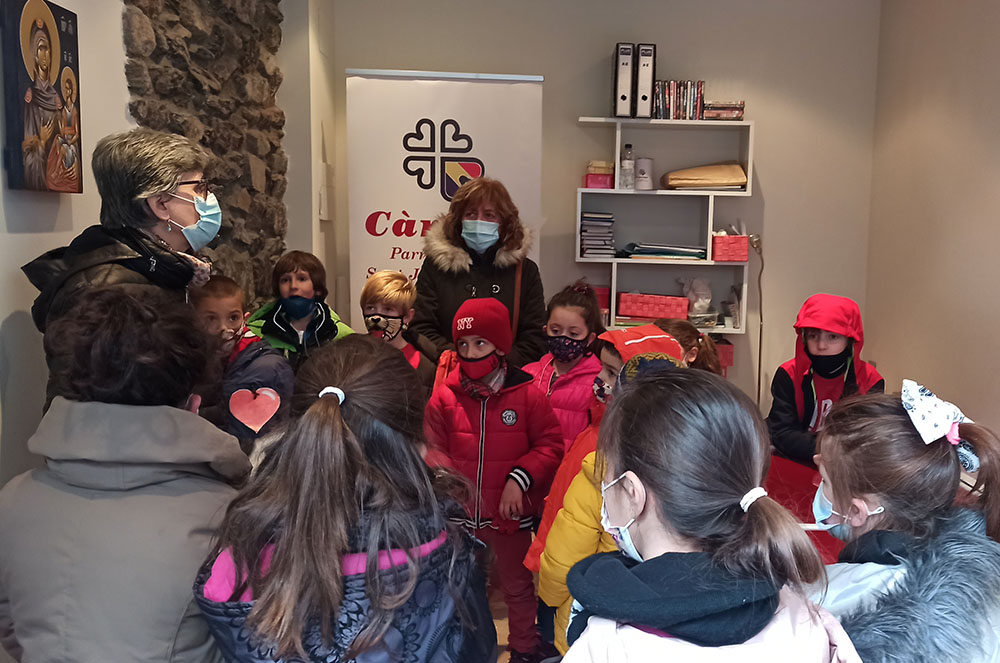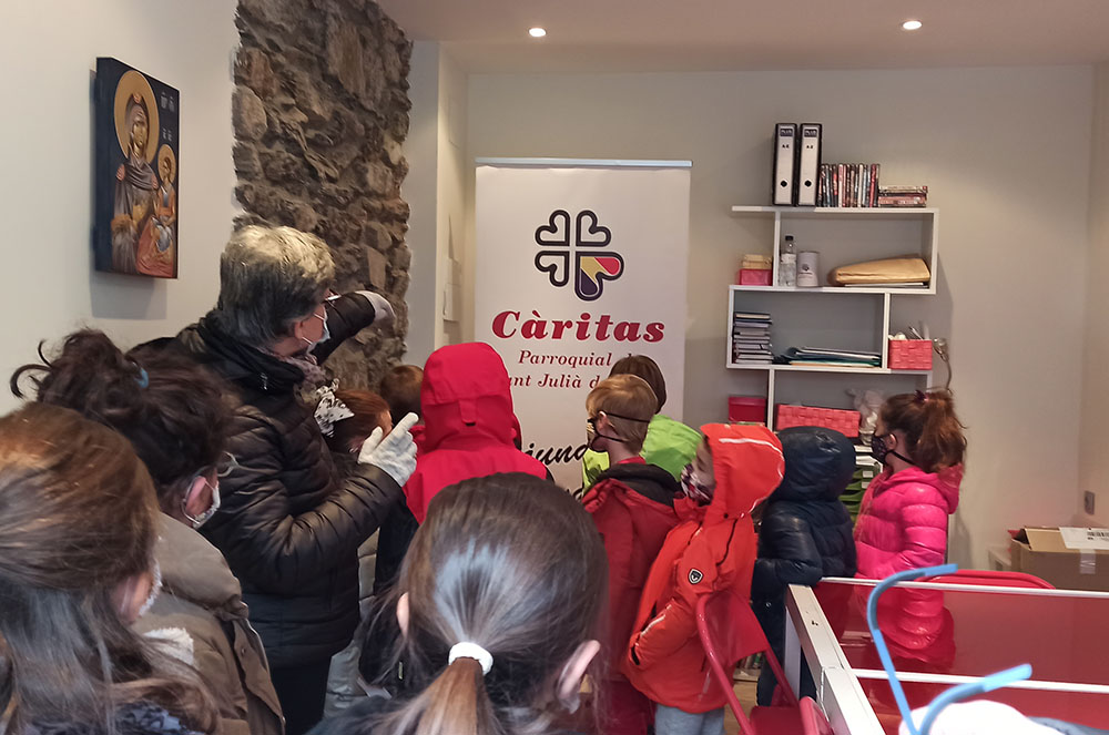 Els infants de la classe els Mussols, del primer cicle de l’Escola Andorra de Sant Julià de Lòria, van visitar la seu de Càritas Parroquial, on van ser rebuts per mossèn Pepe Chisvert.