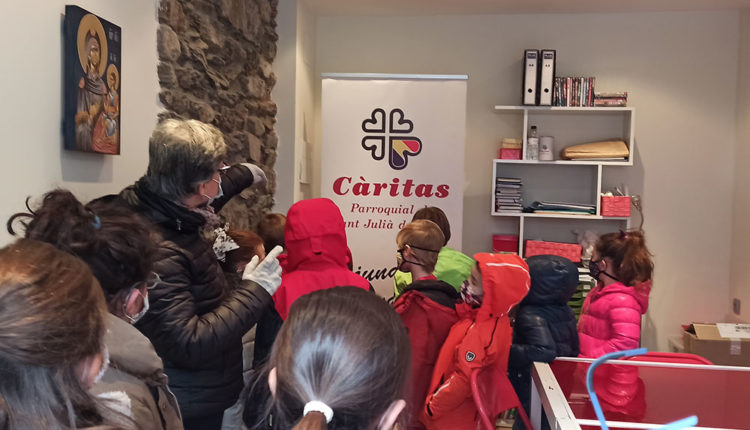 Acompanyats de les seves tutores i de la mestra de religió, els alumnes del primer cicle de l’Escola Andorrana de Sant Julià de Lòria, de la classe dels Mussols, van gaudir d’una visita didàctica i divertida, en la qual mossèn Pepe Chisvert, rector de la parròquia laurediana i consiliari de Càritas Sant Julià de Lòria, els hi va ensenyar el significat dels quatre cors que conformen el logo de l’organització.