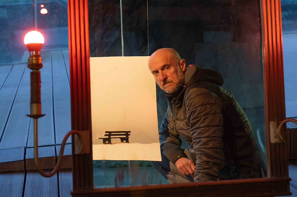 L’obra del Carles Esteve, un dels inconfusibles i incombustibles fotògrafs que recullen el dia a dia del Govern d’Andorra, difícilment es pugui explicar amb paraules. Es tracta d’una instal·lació on la màgia es percep in situ, en directe, ja que consta d’un mirall ubicat al mig de la Peixera on, com el mateix Carles explica, “t’has de veure reflectit en el mirall per compatir el que va ser el meu moment ‘haiku’”.