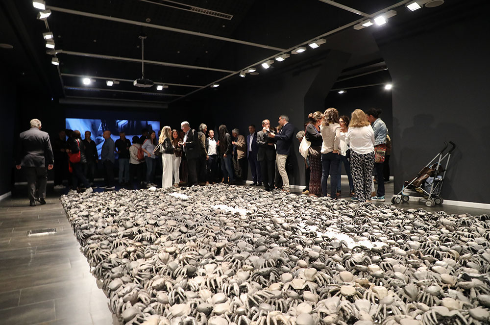 L’artista cubà, resident a Andorra, va presentar una obra de gran format que es compon de milers de crancs fets amb fang