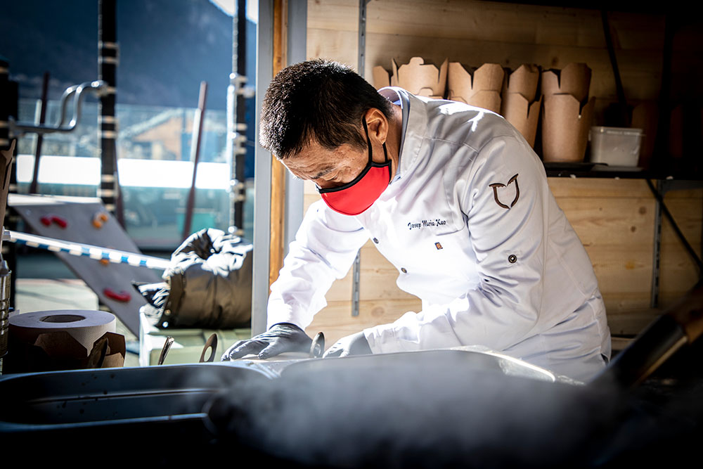 Tal com va fer l’any passat, el xef Josep Maria Kao, alma mater del restaurant Kao Soldeu, va tornar al Poblet de Nadal d’Andorra la Vella per enaltir els sabors de la cuina xinesa, amb un format de showcooking ben apreciat pels comensals i curiosos que, amb el mòbil i la càmera en la mà, es van atansar a la caseta núm. 7 del mercat nadalenc de la capital.