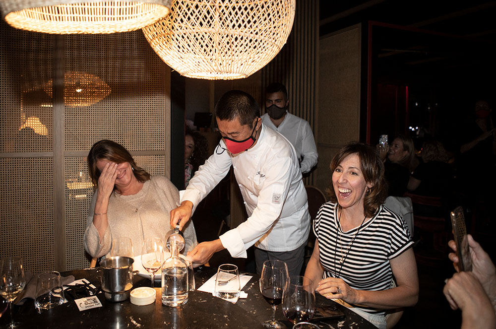 Una vegada a la intimitat del KAO Soldeu, els assistents es van deixar guiar per la cap de sala, Mònica Santín, qui els hi va explicar detalladament les particularitats de cadascun dels set dim sum que s’hi van servir. Mentre les copes anaven i tornaven, als comensals se’ls hi començaven a dibuixar somriures de plaer; al mateix temps, l’inquiet Josep Maria Kao i el cap de cuina Albert Giralt enllestien tres plats principals que van ser molt ben valorats: el calamar amb soja picant; l’ànec estil Pequín amb oblees tradicionals, crudites de verdures i salsa Hoisin; i el caldo d’ànec Pequín.