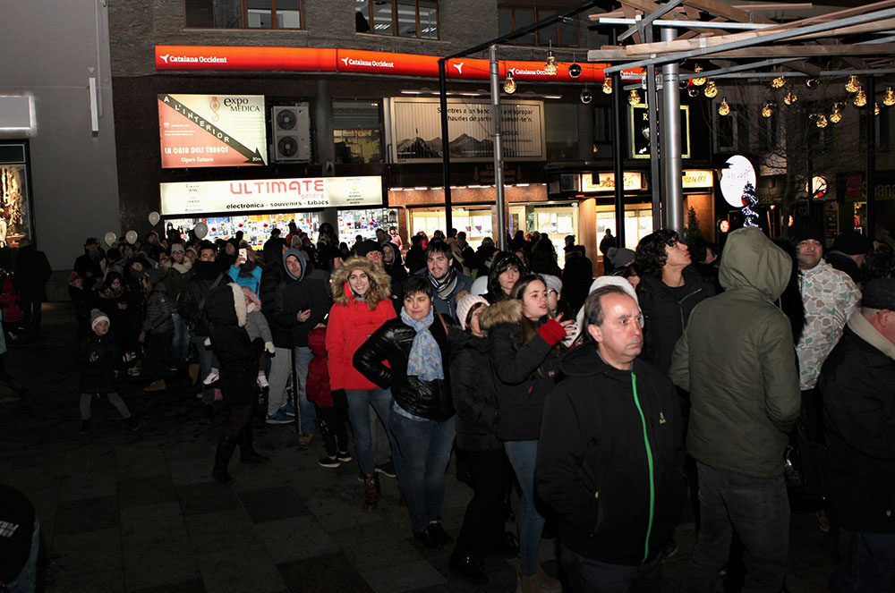 Més d’un centenar de persones van acudir a l’encesa d’aquest enllumenat espectacular, que van engegar les autoritats comunals, el cap de Govern, el síndic general, i els ministres d’Afers Socials, Medi Ambient i de Funció Pública. Per acabar la festa, a la plaça Coprínceps, es va repartir xocolata calenta i vi per a tothom.