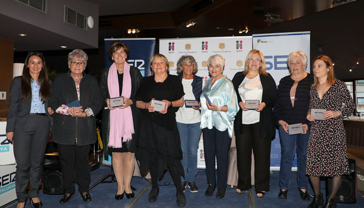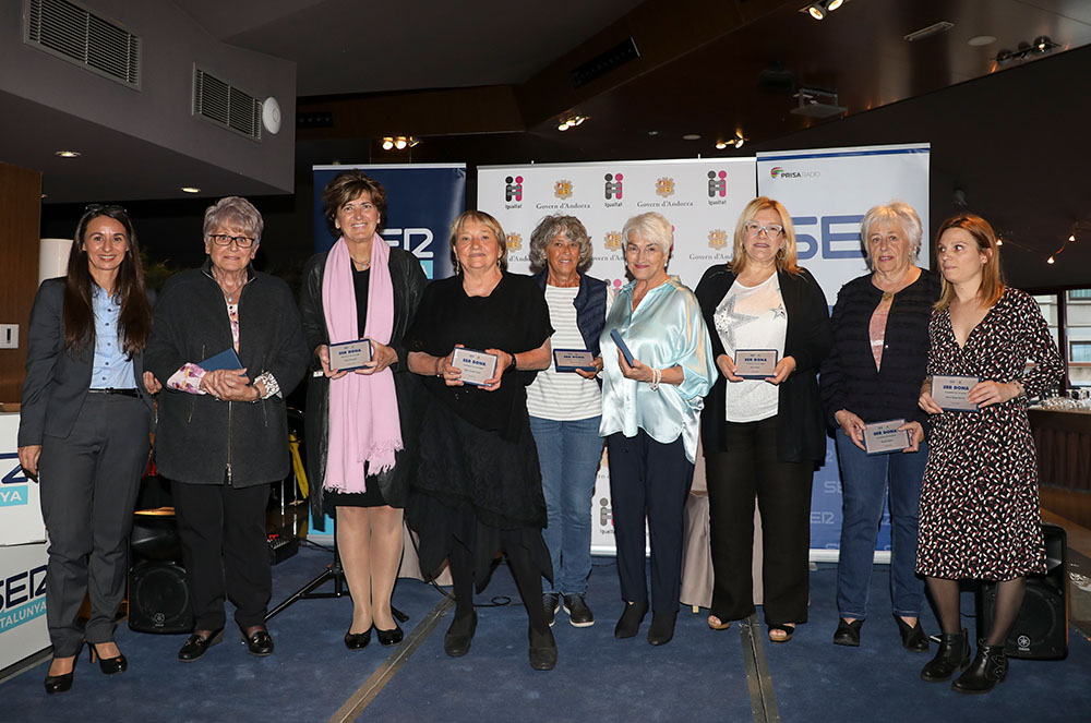 Tot seguit, les grans protagonistes de la vetllada, Roser Duró, Teresa Cairat, Angelina Mas, Maria Teresa Servat, la periodista d’aquesta casa, Mari Carmen Grau, Pilar Cobos, Rosa Ferràndiz, Meritxell Marsà, Tere Morató i Marta San Juan; van rebre una placa conmemorativa i un perfum Eau d’Andorra by Dona Secret.