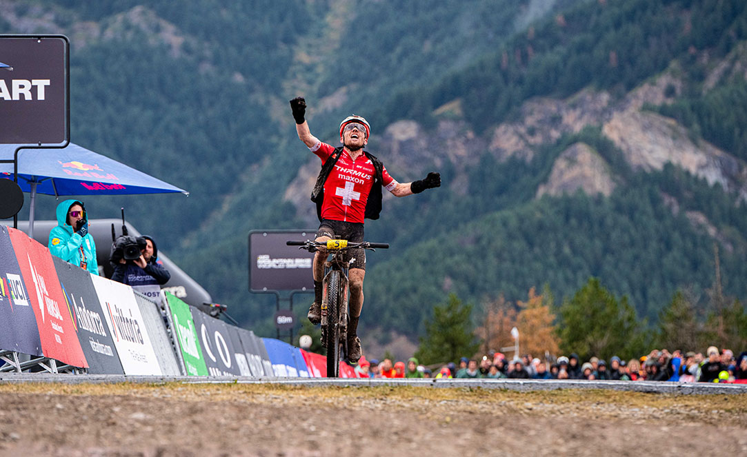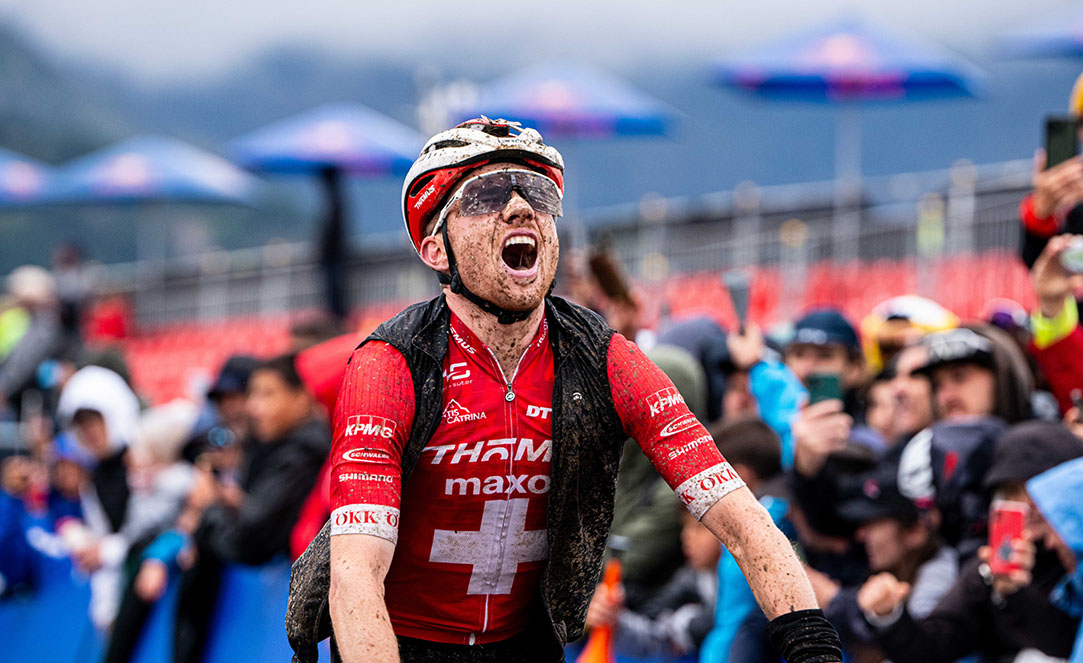 Amb un terreny difícil a causa de la pluja, Mathias Flückiger va ser el millor en el Cross-country Olímpic masculí Elit, situant-se al capdavant des del principi i aguantant les diferències fins a la línia de meta. El guanyador del short-track del divendres, Luca Schwarzbauer, va ser el seu company d’escapada en les primeres voltes, però l’alemany va anar caient i el suís es va quedar sol, liderant a partir de la segona volta. El francès Thomas Griot, que va mantenir opcions de victòria fins a la darrera volta, va aconseguir una segona posició quedant a 23 segons d’un Flückiger, que va completar les set voltes de la cursa en un temps d’1 h 28’ 03’’. El flamant campió del món, el britànic, Tom Pidcock, va ocupar la tercera posició del podi.