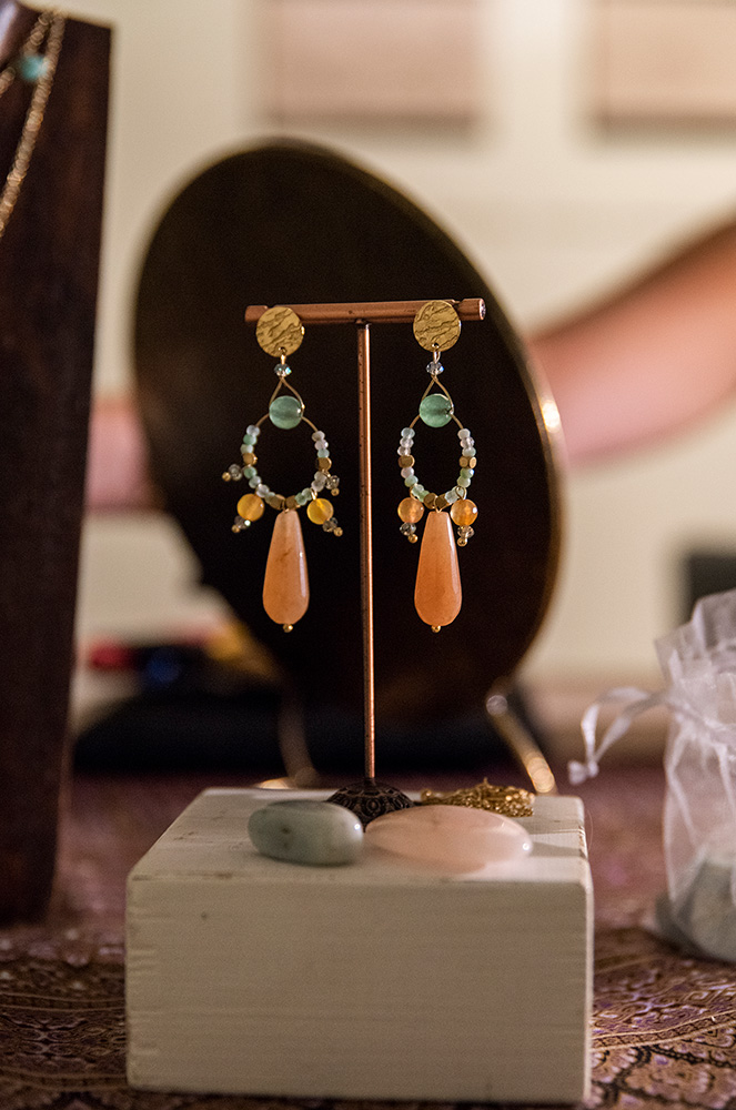 Finalment, Shiori va presentar noves peces inspirades en ‘El bany de les nimfes’, d’Antonio Muñoz Degrain, una obra fascinant i misteriosa. “Com que aquesta pintura evoca sensualitat i feminitat, he volgut utilitzar diferents pedres, molt subtils i difícils de treballar, però que, malgrat que petites, són molt poderoses i plenes d’energia com ara l’òpal rosa, i les iolites, entre altres”, va explicar la Sílvia.