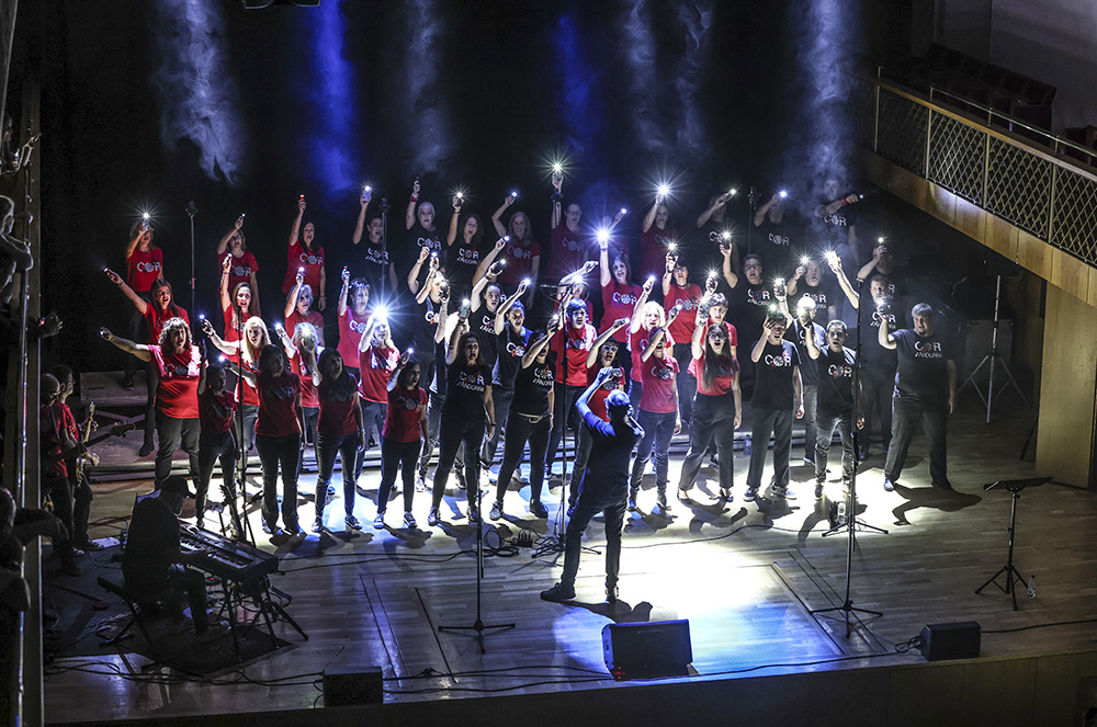 Per la seva banda, el Cor de Rock d’Andorra, l’agrupació de cantaires que va néixer el 2016 amb la voluntat de donar continuïtat al projecte escolar de l’Escola Andorrana de Segona Ensenyança d’Encamp, i després ampliant la participació a tota la societat a partir dels 16 anys, va delectar al públic present a l’auditori amb la interpretació de les versions més conegudes de música pop, rock i de les llistes d’èxit.
