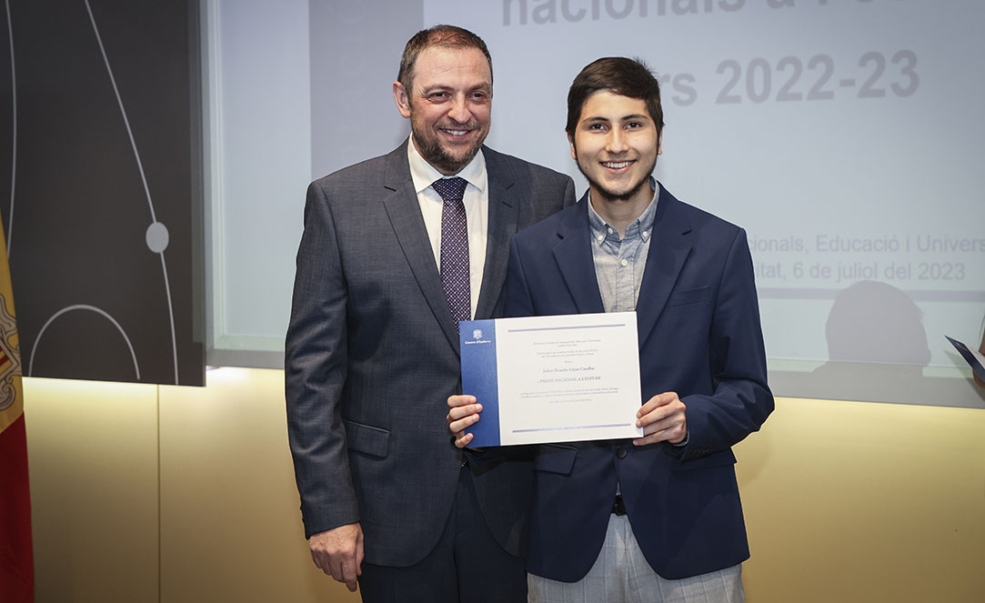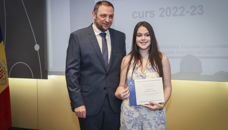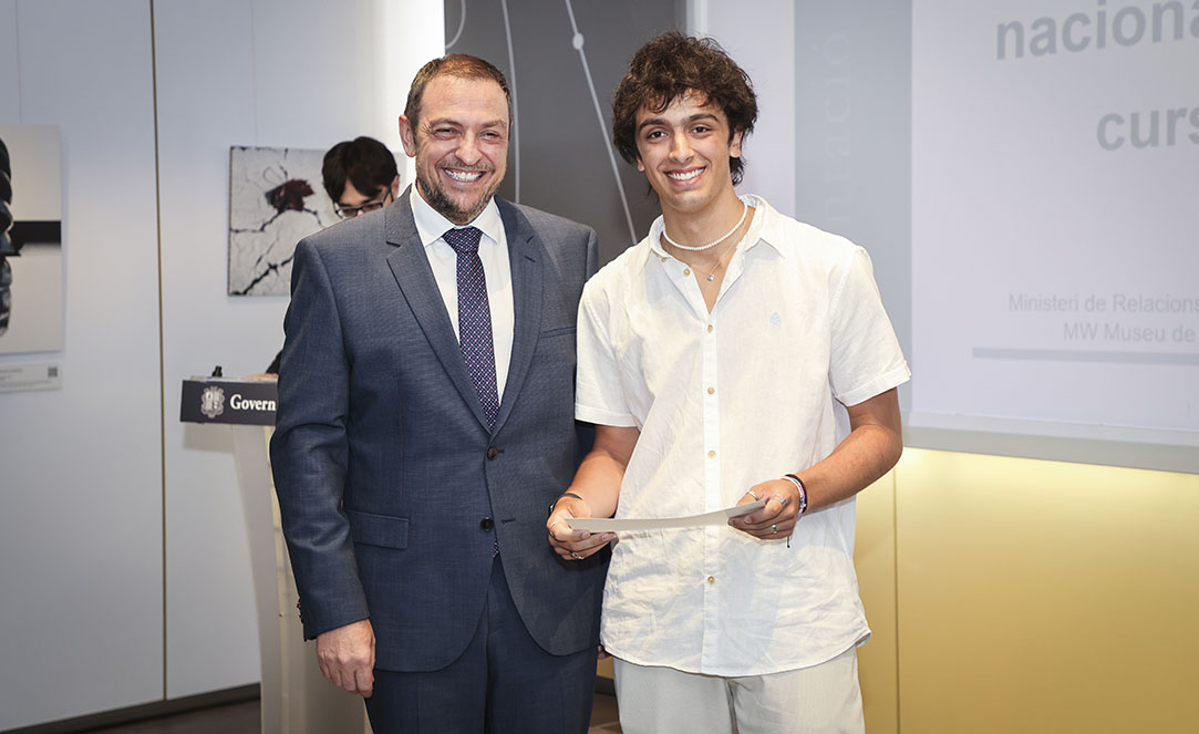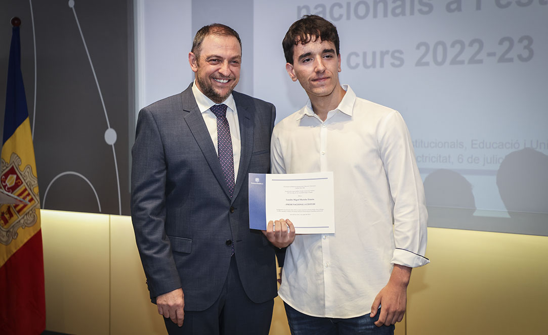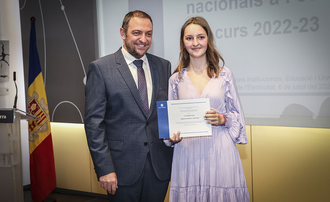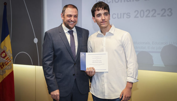 Després d’haver obtingut el millor expedient acadèmic durant el curs escolar, els cinc alumnes més destacats de batxillerat i batxillerat professional, dels tres sistemes educatius del país, Àlex Farré Terron, Laia Dijkstra Vergés, Julian Ricardo López Casallas, Raquel Moreira Lobo i Miguel Marinho Teixeira, van rebre el reconeixement al seu esforç i dedicació amb el Premi Nacional a l’Estudi, guardó que van rebre de mans del secretari d’Estat d’Educació i Universitats, Josep Anton Bardina.