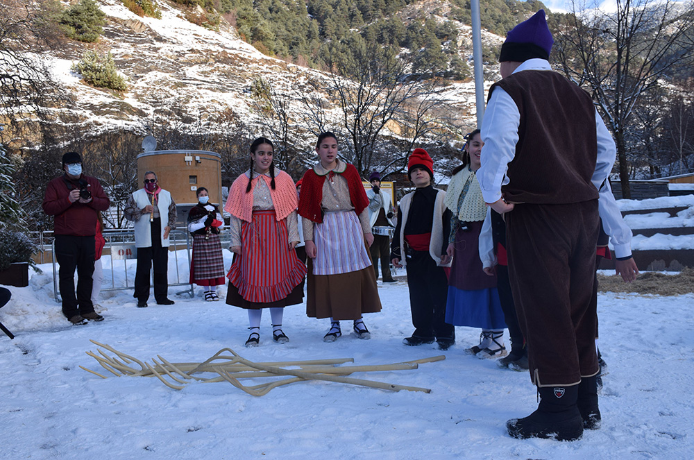 Aleshores, amb molta neu a la plaça del Prat del Call, però escalfats pels raigs de sol d’aquella tarda de dimecres, l’Associació de Cultura Popular d’Ordino va obsequiar els presents amb un càlid espectacle tradicional que, a banda de dibuixar somriures entre el públic, va donar cabuda a l’actuació dels infants en una manifestació cultural molt arrelada entre els ordinencs.