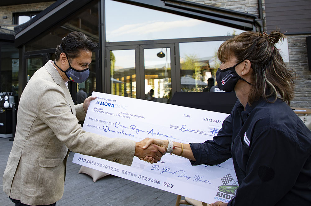 Tot just abans d’onejar la bandera indicativa de la sortida dels 22 cotxes, Paul Deep, resident al Principat i organitzador de l’Andorra Supercar Rally, va lliurar un xec de 10.000 euros a la Creu Roja Andorra, que va rebre la cap d’àrea departament de voluntariat de l’entitat, Sandra Gómez. “Estic encantat que tinguem un grup d’entusiastes de l’automòbil, que tinguin la mateixa idea i que vulguin viure aquest ral·li d’aventures, no només per divertir-se, sinó també per recaptar diners per a aquesta organització benèfica tan digna, com ara la Creu Roja Andorrana”, va manifestar Deep.