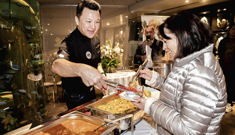 El restaurant Siam Shiki va ser l’escenari de la “Thai Food Cooking Demonstration”, organitzada per l’ambaixada de Tailàndia a Espanya i Andorra. Una experiència única, que van gaudir prop d’una quarantena de persones, veient en directe el showcooking a càrrec del xef Kamol Chaobdee-ngam, qui, amb l’ajuda de dues voluntàries, va preparar plats tradicionals tailandesos.
